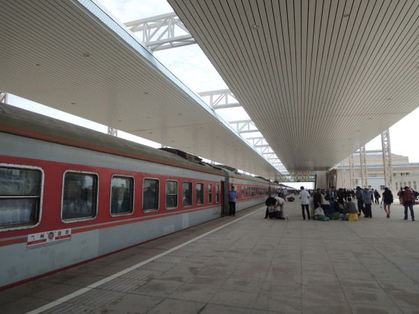 14日,离开兰州继续向西行,乘坐列车为Y667次,开车时间20:30,第二天中午到达敦煌,16个多小时的硬坐,继续给大家体念硬坐滋味的机会,特别是年轻的儿子。不过还好他没有一点抱怨,夜里,在行驶列车上,他一样也会发困,张大嘴进入梦乡,那睡觉的姿态特别让人发笑。硬坐车厢里,夜里旅客各式各样的睡态,总会让人为旅行奔波的艰辛感叹,在车厢里,不论你地位高低有钱无钱,大家都一样平等,不平等的只有有坐和无坐。有坐人会有那么一刻优越感流露在脸上,无坐人总心存羡慕有坐人,拭机能坐上别人离开后留下的空位。