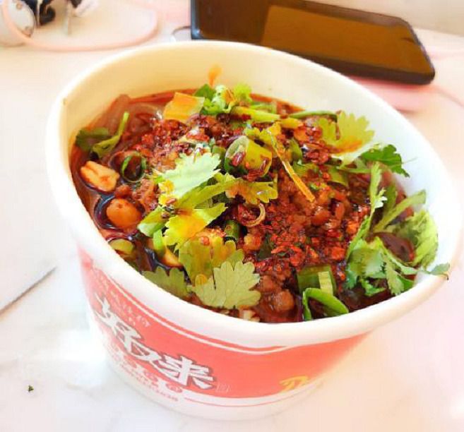 美食街真的小吃特别多,尝一碗重庆酸辣粉,感觉还好,没有想象中的辣,也没想象中的酸,吃起来蛮好吃的。