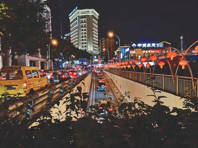 回到入住的酒店晚上了,路过夜晚的解放碑,深夜11点也有人在这