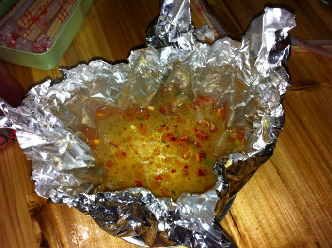 这就是酷客花甲,用锡纸包起来煮的,里面有粉丝和小扇贝,真的很鲜美噢!