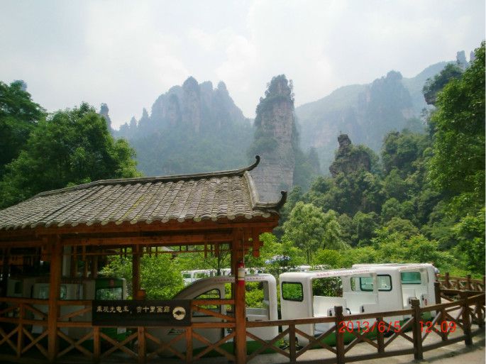6 月5日:早上坐车到天子山停车场,然后步行到贺龙公园,真的是人山人海啊!由于索道可以直接到这里,很多旅游团都走了这条线路。之后去了天子阁,这里有个 仙女撒花的景点,远处的山看起来真的好像一位少女捧着花篮,这是我觉得最像的一个景点了呢。随后就到了小陈口中恐怖的五上五下(大概八千级台阶),就是不 停地上下上下,原本以为会去半条命的,结果还好就走下来了,因为我们是从山上下来,下山的台阶比上山的台阶多,所以一路还是比较轻松的,看着和我们反方向 上山的人爬着真的很累人啊,所以行程选择还是很重要的!看到小火车站也就预示着五上五下结束了,我们没有坐小火车,而是步行走完了十里画廊,其实也不远,慢慢走既可以欣赏风景,还可以停下来拍照,何乐而不为呢?十里画廊走完就坐车到了武陵源门口,这也是其中一个大门。至此,张家界三日游就结束了,大概是下午一点多,我们还回到市区吃了午饭再去的火车站,所以说资深导游的贴心安排真是完美啦!第二天早上回到了重庆。
