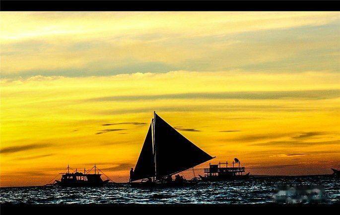 【碧绿的的海浪,美丽的晚霞,是长滩岛最动人的标志】