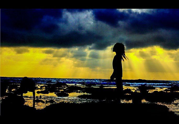【在巴拉望的尽头,清晨海边的拾贝少年】