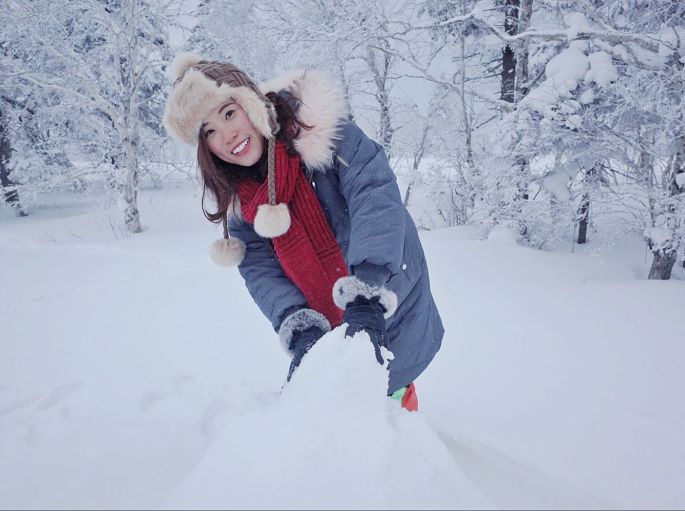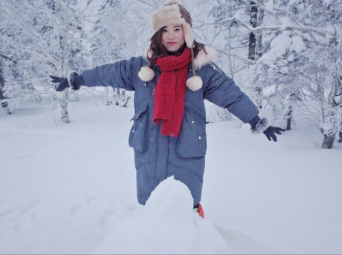 其实雪景下面,随便拍拍真的都很好看!女生可以涂上正红色的唇膏,超显的。