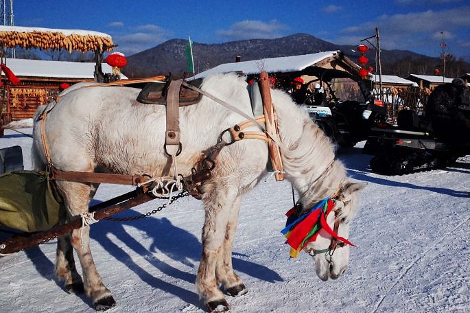 民俗村里有坐马车和滑雪的项目,不过体验的人比较少。可能来这里的游客 主要还是想看一眼真实的东北大农村为主~