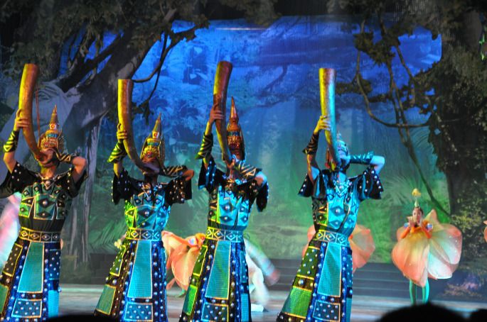 第二天开始有点凌乱了,司机师傅对于我们的路线全部推翻,要重新安排,比如第二天我们想去大佛寺,野象谷,花卉园,但是司机师傅和我们沟通来来去去,他很不高兴。结果我们就被他强烈推荐的去了野象谷,野象谷路上,他要求我们把钱(门票+骑大象钱)给他,他说门票是65,大象每人200,我们说到了看情况吧,再决定是不是要骑大象。司机师傅很生气,说是他打好招呼了,我们觉得纳闷儿,你开车的饿,打什么招呼啊。没把钱给他,他极度生气。我也生气了,他逼着我们骑大象,我就说今天只包半天车。于是我们自己买票,门票不是他说的65,而是52,还是53来着。因为说了只包半天,我们进去搜搜的走,什么也没看,1个小时不到从南门到北门就走出来了,决定回去。因为我们不骑大象,他还是很生气,逼着我们,后来就好好的说求我们,我们去起骑大象了,每人200,2人400,他从中拿到了提成。在这之前还有一个插曲,就是一般去版纳自助游的不会去游轮,但是他不断的推荐,说了我们自己定的景点如何如何,他推荐的这个如何好,买不到票,要提前一天。我们两因为也没定下来,(计划全被打乱),头一天晚上电话说了第二天可能去看做游轮的事儿。结果,也就是我们从野象谷回来,他逼着我们去游轮,我们不去,他差点和我们打起来,说什么他都和人家打好招呼了,我们怎么能不去呢。门票每人280,2人560.我们因为在当地也每人有认识人,他各种威胁,逼着我们去看,所以那天晚上的心情糟透了。感觉女孩子出去就是容易被欺负。唯一开心的事情就是在游轮上有经验的人妖表演,其中一个女孩子,真是美极了。