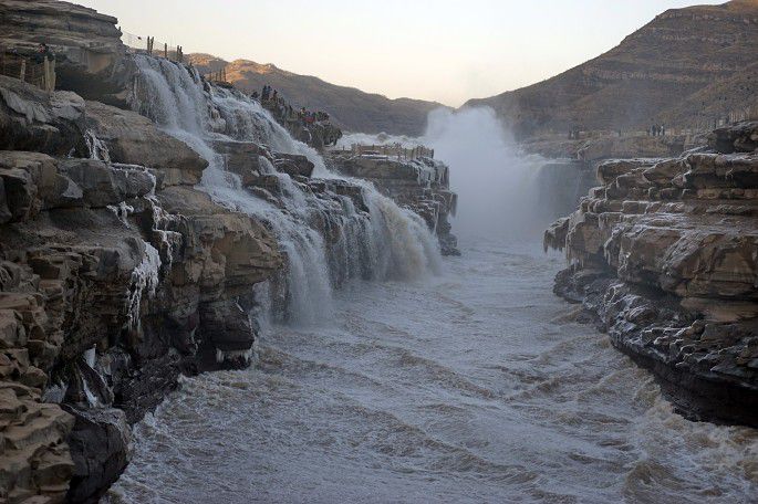 地势有异。从陕西看壶口,地势比山西一侧高,悬流激越,危崖险峻,临渊观瀑,窥深悸魄!3年前从山西看壶口,气浪扑面而来,现场仿如烟雨,衣衫、头发乃至相机,均沾满浊黄气浪。而从陕西一侧观景,瀑布气浪腾空,辄向对岸飘去,是地势使然吗?