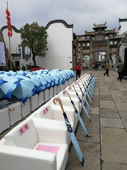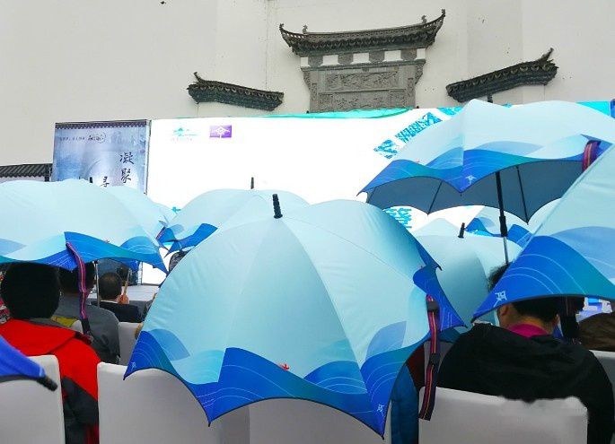 仪式即将结束之时,也许是老天爷早就发现了会场每张座椅旁的特色雨伞,便非常配合地下了一阵雨,让我们又撑起了一道美丽的风景线。