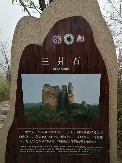 很遗憾,雄伟奇特的“三爿石”,被浓雾包裹得严严实实,美景标牌上的和我们眼前所见的…