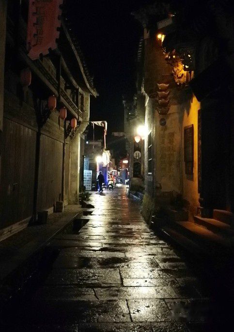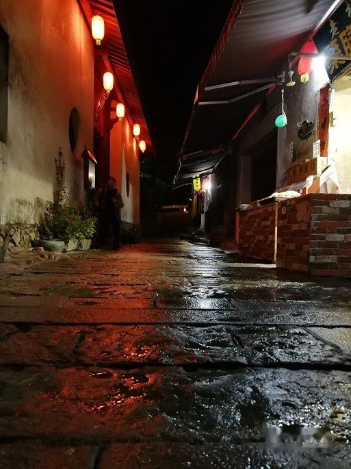 我们这几只早起鸟,摇身一变,成了夜猫子,游走在古镇的街巷里。踏着湿湿的青石路, 穿过狭长的雨巷, 那份清幽、那份宁静,渐渐渲染,挥之不去。
