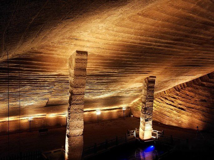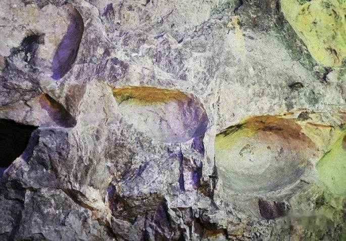 进入洞中,洞壁上用很多大大小小的圆坑,坑面光滑洁净,这是当时用世界上最先进的烧爆采矿方法留下的烧爆坑。在当今科技发达的年代都难以做到如此光洁的坑面。又一个令人费解的谜团。