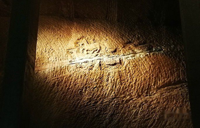 一号谜窟最小,离窟口不远处有鱼、马、鸟三种动物雕刻图,
