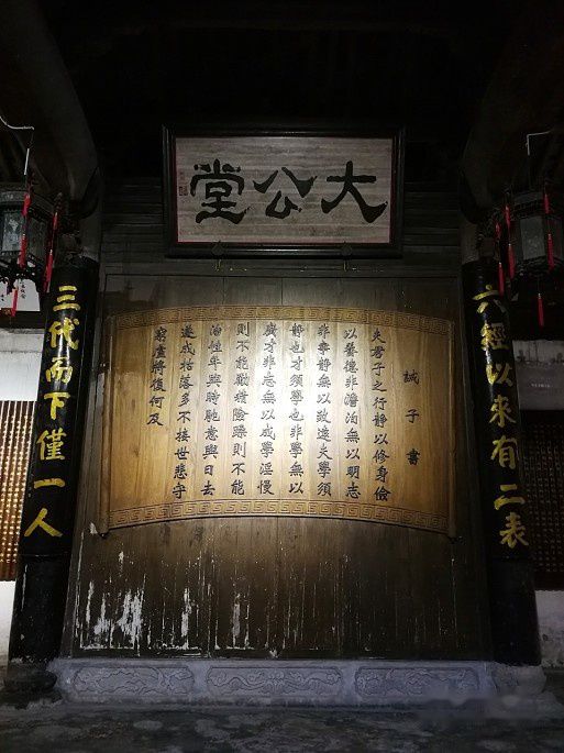“大公堂”是村里举办大型仪式的地方,诫子书被篆刻于大公堂牌匾之下。