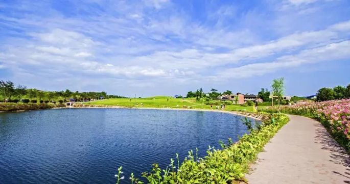 沿着园内观光步道漫步,可以在道路两侧,看到醉人的樱花大道、桂花大道、香樟大道、榉树大道、木兰大道等景观大道,还有沿途的春夏秋冬四湖点缀其中,平添几分灵性,生活在这里一定不会感到烦恼。