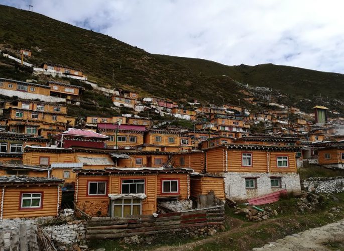 行走在这片红色海洋的小木屋中,身着绛红色僧袍的喇嘛和觉姆(女性修行者)从身边来来往往。这里因为自然条件非常恶劣,缺水缺氧,冬季又高寒高海拔,冬季没有取暖设备,因此他们在这里修行,过得非常贫苦。然而尽管这里的生活条件如此艰苦,他们每个人那带着高原红的脸上却满是安静祥和,仿佛没有一点烦恼,在这里,他们的日常就是修行,修行,修行......多少人慕名而来,最后在这找到了自己灵魂深处的归属,选择留下在此修行。