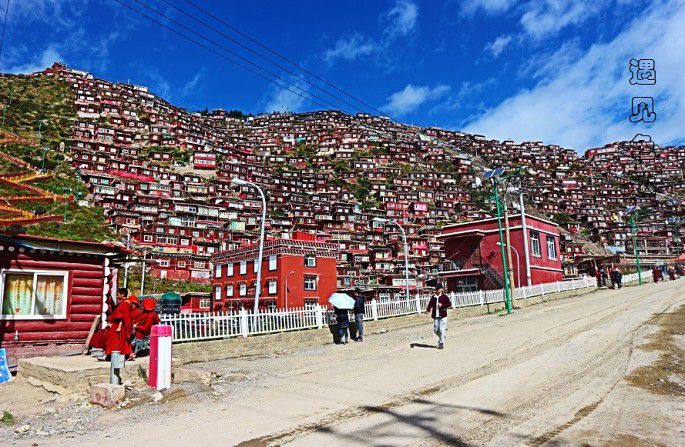 色达喇荣五明佛学院是由晋美彭措法王1980年创办,在短短数年间从藏区一个山谷深处迅速崛起,一跃成为世界上最大的藏传佛学院,听说这里之前最鼎盛时有几万出家僧众在此居住、修行。数千间绛红色的藏式平房连绵几公里,簇拥着几座辉煌的寺庙和佛堂,形成了一座壮观的小山城,这是千百年来在此修行的僧众亲手搭建起来的山间奇观,这里承载的是他们满满的信仰与虔诚。相信每个位初次到来这里的人们,看到这样庞大的阵势,内心的震撼不言而喻。只是不知道改造之后的佛学院是否还能保有这样的盛况,听来过多次的“遇见”帅哥说这里的小木房及僧众已在慢慢减少.......