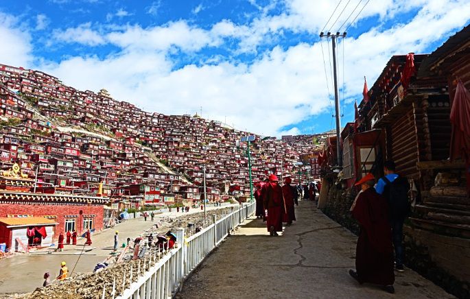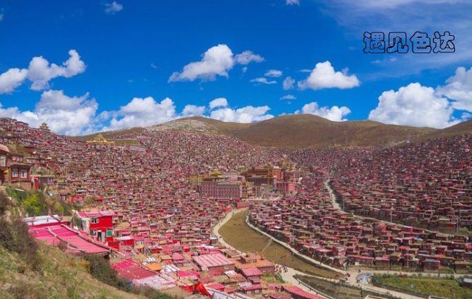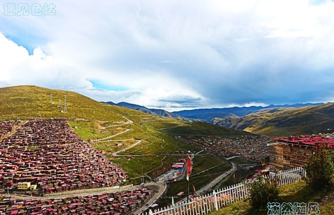 来色达,主要奔的就是那尘世之外的佛国世界—据说是世上最大的藏传佛学院---色达喇荣五明佛学院。色达县城到五明佛学院45分左右车程,可以在坐公交车4元,也可以到金马广场拼车前往,7元到10元不等。