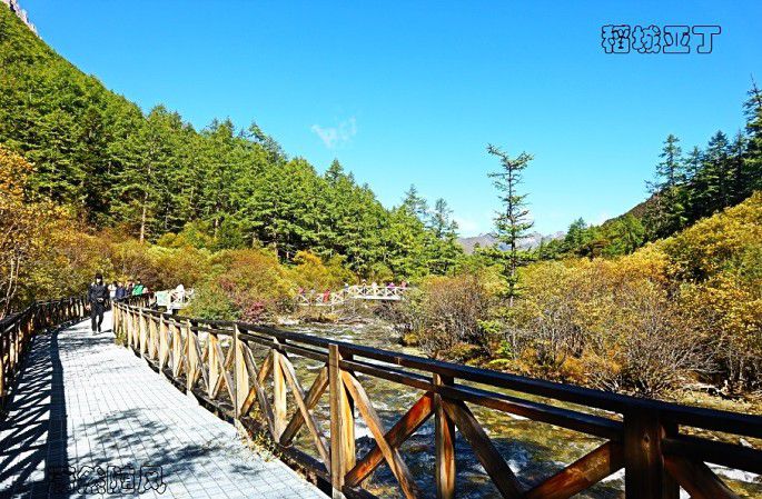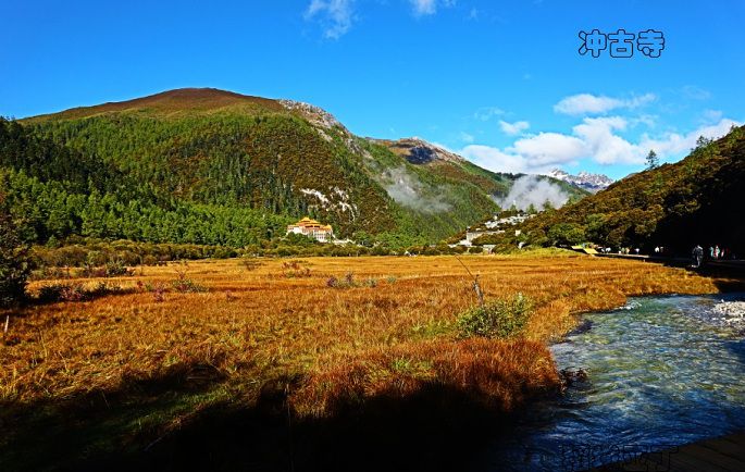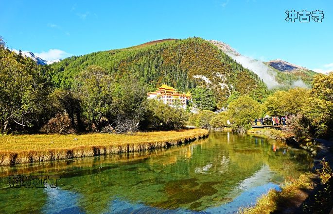 下车后,徒步到冲古寺,一路溪流相伴,两边树森呈现出秋色。