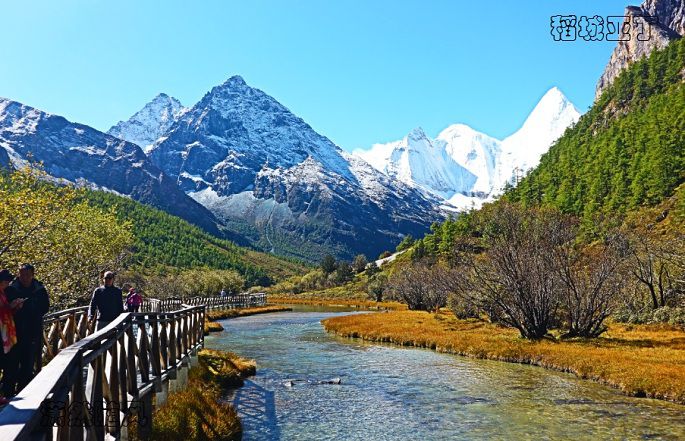 走走停停,差不多两个多小时后,终于到了络绒牛场。这也就是电影里,茅十八向荔枝求婚的地方。清澈透亮的水,大片渐黄的高原草甸,洁白高远的雪山,秋天的稻城绚丽多彩,美得让人不敢相信!
