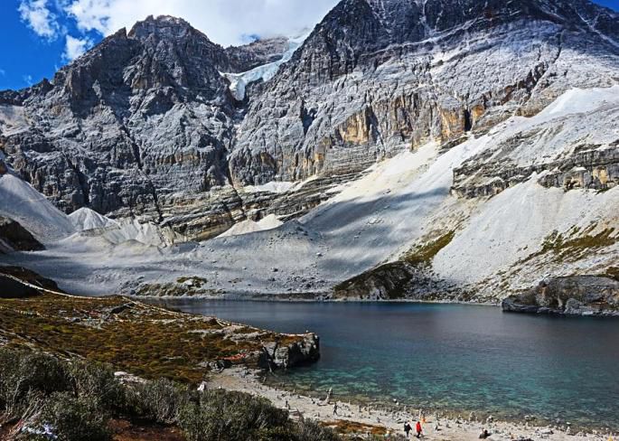 五色海就在夏诺多吉雪山下。老实说,千辛万苦爬上去,见到的五色海并没有想像中那么的美,可能是因为光线原因吧,并没有看到五种颜色。