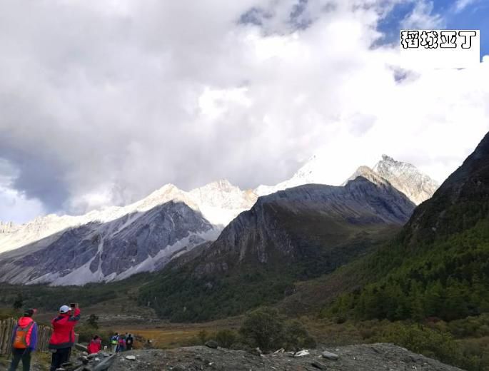 10月5日,仍然得早起,而且今天还是最早的,四点半就得起了,和客栈的其他人拼了个车去亚丁,说怕晚了景区人多,还是早点去,不然一天没法玩到自己想要的景点。后来事印证,这一决定是非常明智的!,早上5点出发,7点左右到达景区,发现坐那里早已排起了长龙。听说因为游客较多,国庆期间景区限流量,因此早早就在网上提前订好的门票,到了那里,直接电话联系,工作人员专门取好了门票拿给我,省了排队买票时间,直奔景区换乘观光车而去。