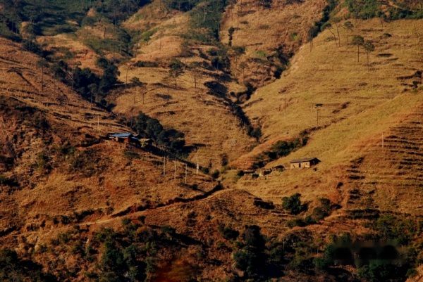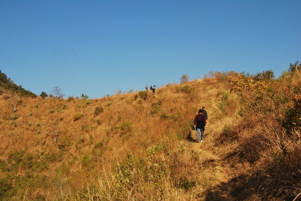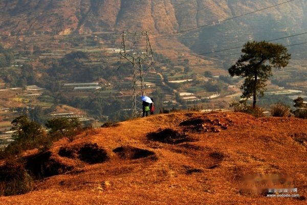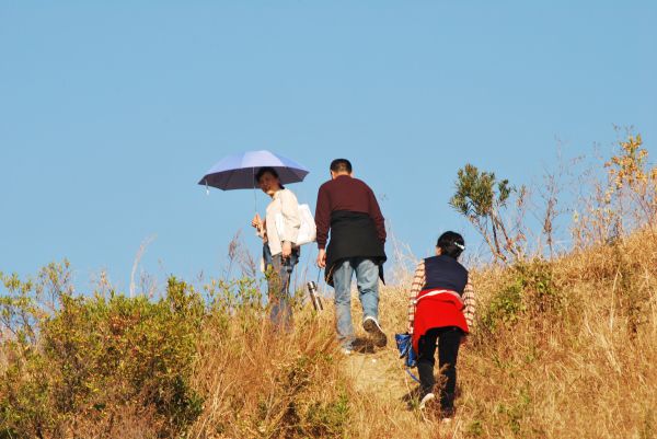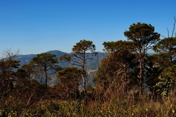 我们住的地方是个山区,爬山成了我们每天的活动内容。早春二月,太阳的光辉毫不吝啬的给了大地、山川,我们迎着初升的太阳开始了爬山。山不是很高,估计垂直高度在500米左右。山上,出了我们能看见的几间据说是彝族同胞的住家外,基本为无人区。山的下部,主要生长着草类植物和灌木,还有当地著名的攀枝花树,人们就在这里放牛牧羊,山的上部主要生长着茂密的高山植物松树。我们一行人都是50开外的人,爬山不是为了征服自然,而是享受自然,我们沿着山路向上爬,爬上一个山头,前面还有更高的山头,于是,我们继续往上爬,就这样一个一个的从一个山头爬向另一个山头。开始还有路,到后来就没有路了,坡也越来越陡,除了茂密的松树外,就只有杂草丛生,荆刺遍地,但是,爬山的惬意,一路的风景,和不服老的心态,促使我们继续往上爬,在大家不懈地坚持下终于爬上了山顶。此时此刻,对于我们这些成天待在都市里生活的人,能与大山亲密接触,用自己的汗水和毅力,劈荆斩刺,征服了一个个山头,站在了高高的山之颠,心里充满了无比的兴奋与欢乐。站在高山之上蓝天之下举目四望,一览众山,心旷神怡,扫去了爬山的疲惫与生活的无奈,同时,也荡涤了城市的喧嚣与浮躁,人的心灵,在炽热的阳光下,在包容的大山间,得到了净化和荡涤,生活的烦恼,工作的压力,在这里抛在了九霄云外。