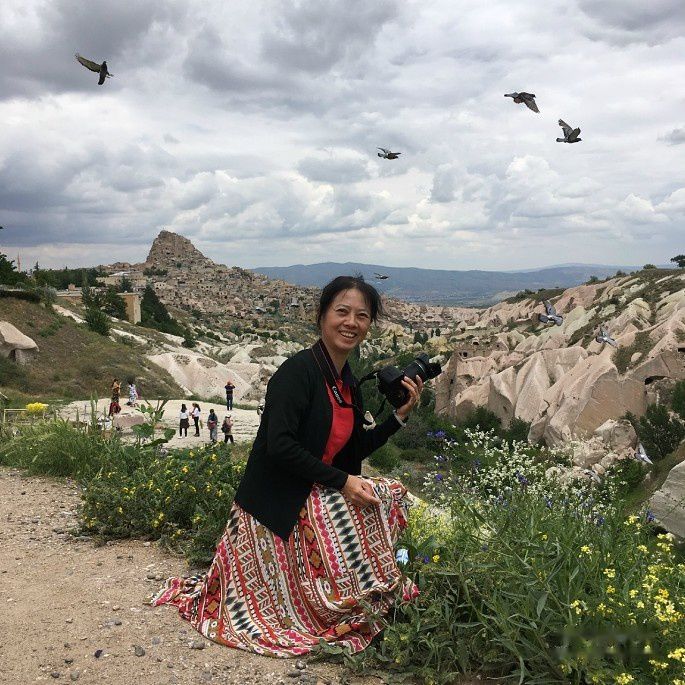 从鸽子谷远眺,我看到了依山而建的格雷梅城,密密麻麻的房屋与圆锥形的岩石高低错落,相互映衬。楼房的窗户与岩石的洞穴和谐交融,人类的智慧与大自然的伟大绝妙地呈现在眼前,我赞叹、钦佩生活在这片奇特土地上人们的毅力与才智。