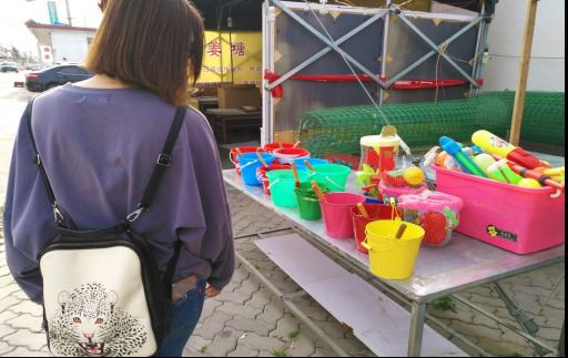 村里的主路两边有很多小店铺,因为是淡季,很多都是处在暂停营业的状态。但是也不乏有买些小玩意的店铺。小桶、小铲子、玩具水枪,都是海边玩耍的必备品。
