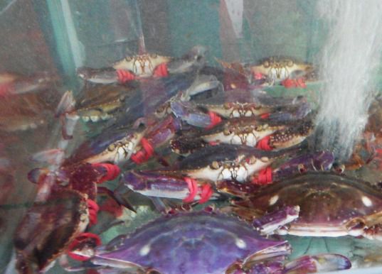 梭子蟹在内陆也有很多卖的,但是在海边的螃蟹看着精神头更足些。