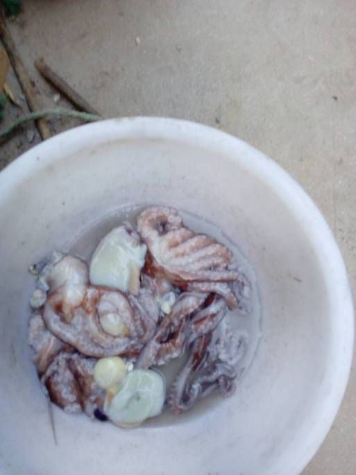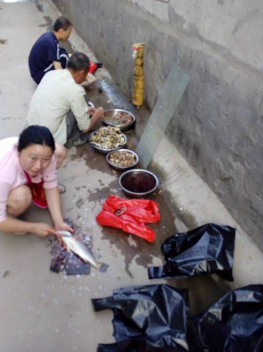 活海鲜买回家,渔家大姨、大叔齐上阵,在盆里洗干净,准备上灶。