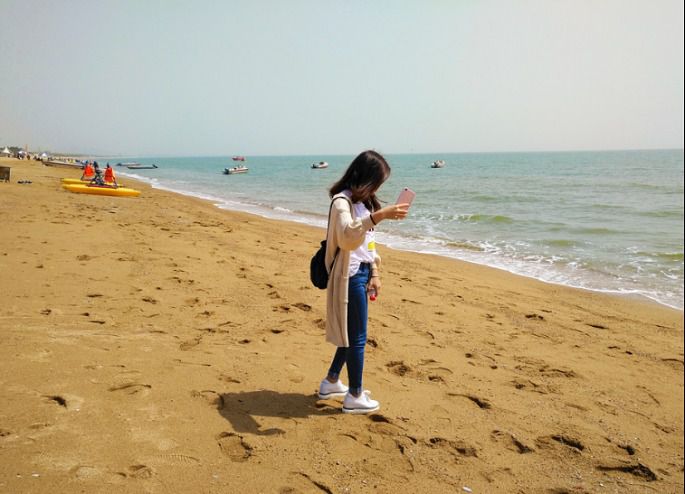 小静开启了自拍模式,这么没得大海做背景,拍出来肯定很美吧。