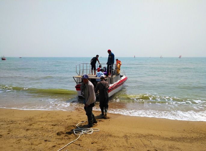 叮咚! 看上空中飞散了,哈!够刺激的游戏,坐船去海里起飞了!!