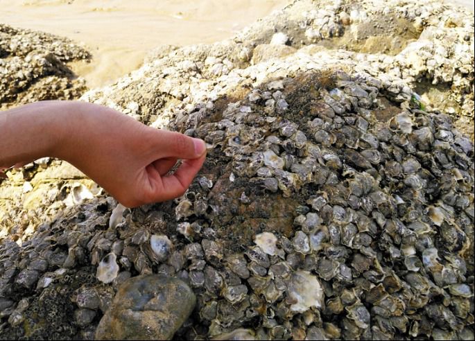 长在岩石上的牡蛎,可惜没带工具,用手指是挖不动的,还很容易划伤手