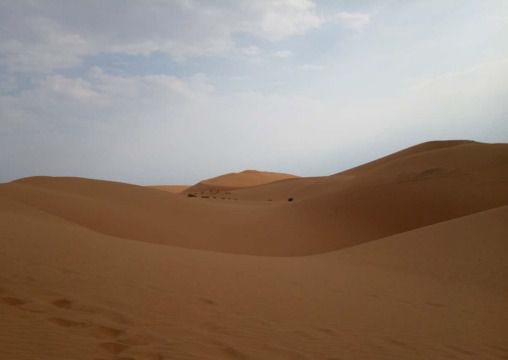 沙丘连绵不断向远处延伸着,天上云层渐渐厚了,远处,几束阳光从云层缝隙中斜斜刺下来,煞是好看,可惜,手机拍不出那样的美景。朋友也在旁惋惜,说要是天晴的话,沙漠日落也是很好看的。