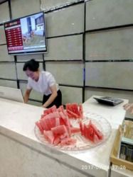 上篇说到,黄河大酒店位于市中心鼓楼附近,我是在美XX预订的,比门市价便宜了三分之一,入住以后发现,酒店不仅地理位置好,工作人员服务也很用心。虽然酒店设施有些陈旧,但是热情的服务弥补了这点缺陷。本来预定的是精品大床房的,看到我们带着个半大孩子,前台主动免费帮我们升级了大房间,并且免费赠送了一盘当地的特产-硒砂瓜。冰冻过的硒砂瓜甘甜多汁,儿子一块接一块地吃,似乎不过瘾,竟然还跑到前台的免费大盘里又偷吃了几块,呵呵。(不是做广告哦,服务真的不错)