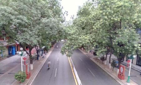 呵呵,原谅我这个吃货,一说到好吃的,就把正题忘记了。宁夏中卫的第一个晚上吃饱喝足,一觉睡到自然醒,晨光从窗帘缝中透进来,小鸟在窗外唱着歌,看看时间,不到6点钟,老公和儿子还在呼呼大睡,于是轻手轻脚起床洗漱,看看手机天气预报,外面气温只有21度,带上外套和手机就出门了。大街上空荡荡的,偶尔有车驶过。一阵风吹来,竟然下起了花瓣雨,地上铺满了槐花,空气中弥漫着槐花特有的清香。想到了小时候,我老家徐州也是有很多槐树的,槐花盛开的时候,因为槐树很高,我们还特制了工具去摘花,摘下来的花晒干了可以拿到医药公司换点零花钱……正恍惚着,旁边传来了沙沙声响,原来是清洁工在清扫街道。一眼瞟过去,发现清洁工的扫把很有意思,有点像哈利波特中的魔法扫把,不是我们常见的那种扁平的竹扫把,后来逛街的时候,也留意到宁夏中卫的扫把都是这种,用的时候像个魔法扫把,不用的时候,前面拿根绳子一捆,就像根粗棍子,不占空间。