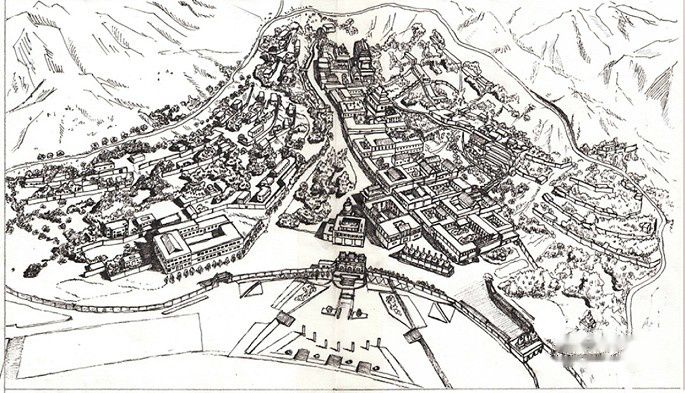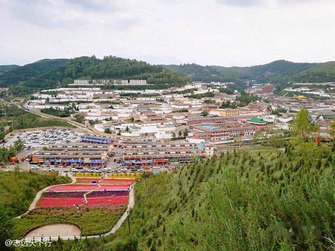 图:塔尔寺全景,远处的是主要寺庙建筑,大部分看到的是僧人的住处。