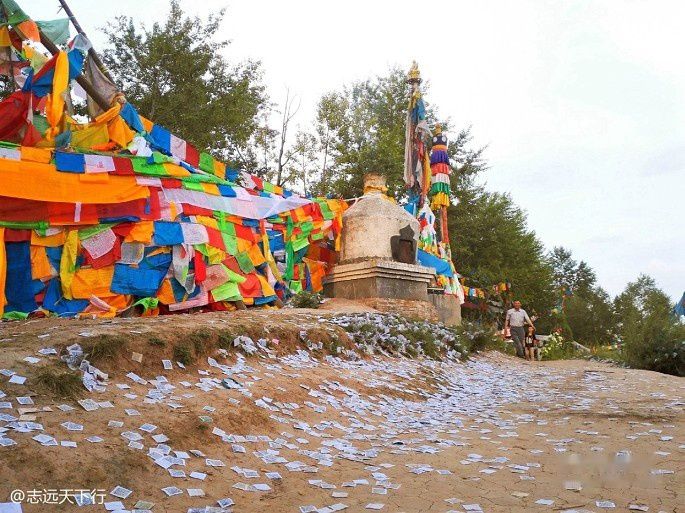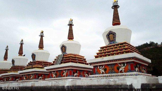 图:莲花山顶的藏传佛塔,俗称为喇嘛塔,飘动的经幡很有力量。