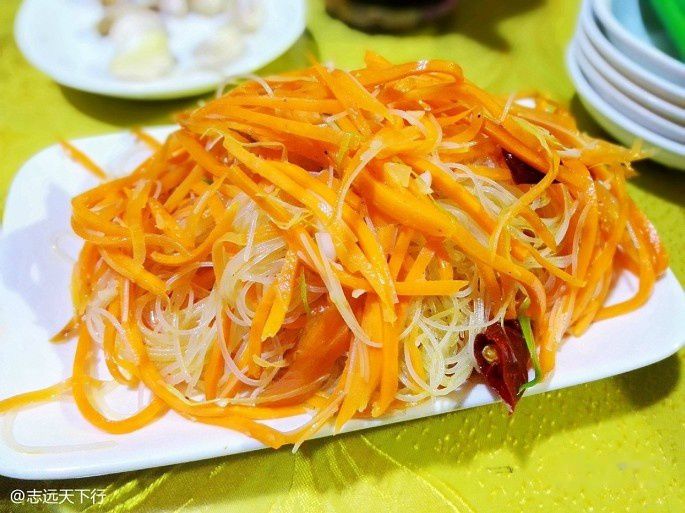 图:他们家的凉菜也很不错,这盘凉拌粉丝,我们吃完一盘觉得不过瘾,又多叫了一盘,真的很好吃,强烈推荐。