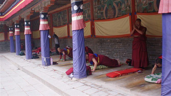 一大早在马子禄吃了很好吃的牛肉面后回到宾馆大兵师傅已经在等着我们了,放好行李出发罗!没过多久到了塔尔寺了,塔尔寺位于青海省西宁市西南25公里处的湟中县,是宗喀巴大师的降生地,因而成为信徒们向往的出名圣地。这里的堆绣、酥油花都是难得的艺术品。