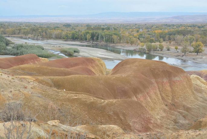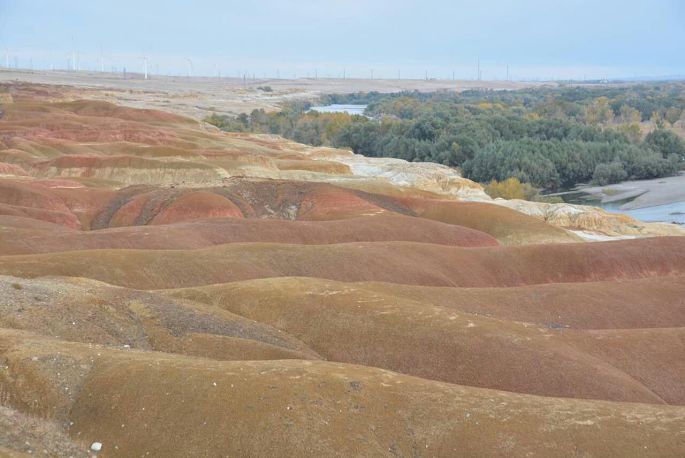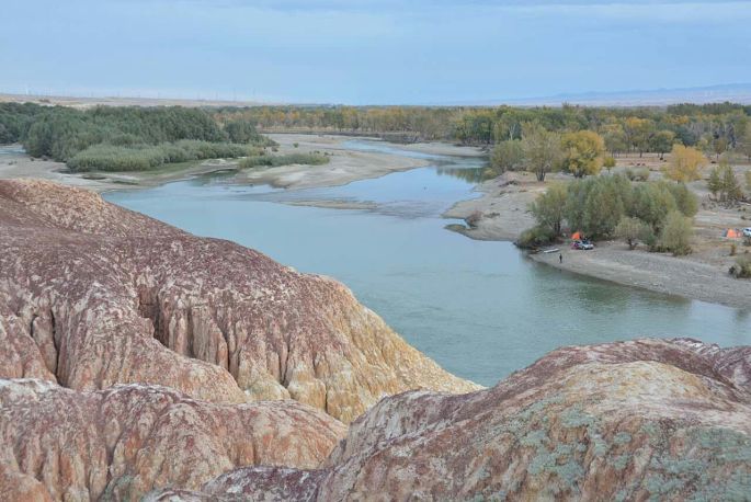 清晨拍摄额尔齐斯河大峡谷日出,出景区后,参观被称为地质圣坑的三号矿坑(正是这个坑,在60年代曾为国家偿还了前苏联足足40﹪的债务,应该是提炼核原料的吧!),一个比较大型的矿坑,汽车可以在坑内修好的路行走。三号矿坑旁有当地人的宝石市场,可以在这淘几串自己喜欢的物美价廉的石榴石手链。途经北屯、布尔津,日落之前我们来到离布尔津30公里的五彩滩,观额尔齐斯河日落,晚上回到布尔津,在布尔津河堤夜市品尝美食:手工酸奶,卡瓦斯,烤狗鱼,特色是烤狗鱼,但价格不菲,按条算,40、60、80、100不等,人均一百多,好歹也腐败一次吧!