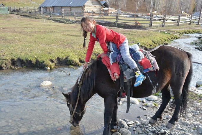 白哈巴还保持着原始生态,遍地马屎也是标志之一,在这个马背上的世界,到处是骑马的,几岁的小孩子都会骑马,真难想像他们是怎样爬上吗背的,可惜是在商业化的今天,金钱的诱惑已经开始掺透了这里,小小年纪已经在骑马向游客兜生意而且还十分老成。