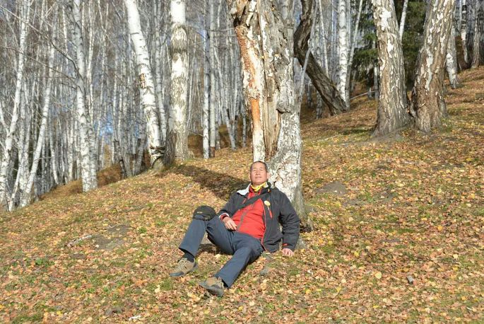 下午漫步于禾木乡小道,远望薄雾覆盖下的美丽峰,山中的白桦林、西伯利亚落叶松、花楸树,美丽的色彩,空灵的安静,金色白桦林中,躺在落叶中发呆,美美的睡在秋色的白桦林里