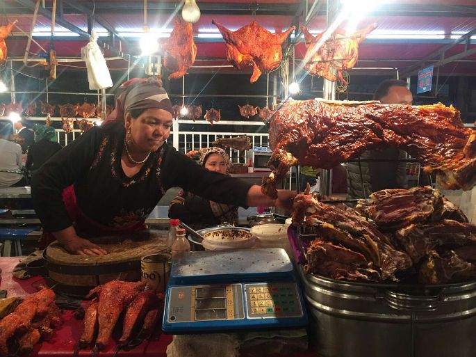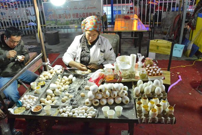 饭后去了和田夜市,特色烤羊肉,烤鹅蛋,等等,简直是美食天堂。