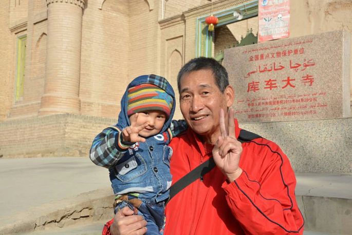 清晨参观库车大寺,库车巴扎,感受古龟兹风韵,在库车大寺,与维族小朋友合照,可开心了。