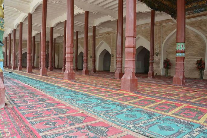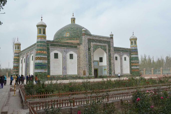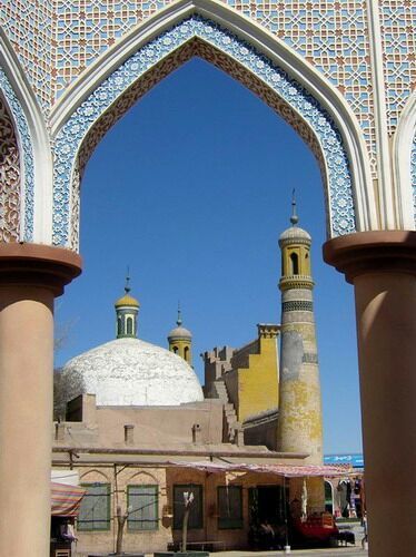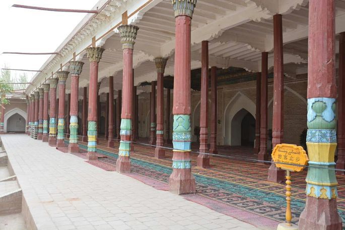 走出高台民居,来到清真寺参观,中国最大的艾提尕尔清真寺,规模还真不少,最多时有五万信徒里面聚集。