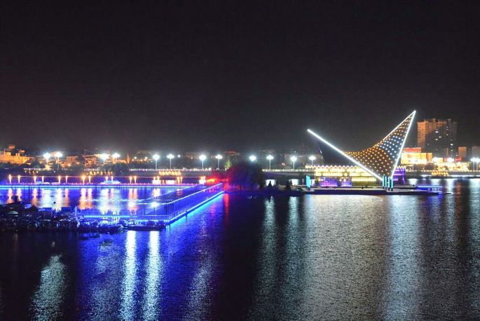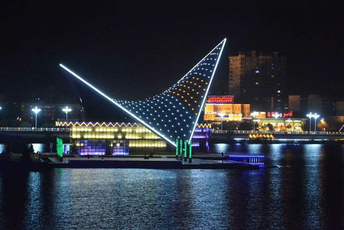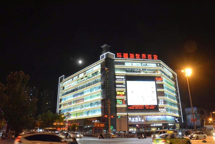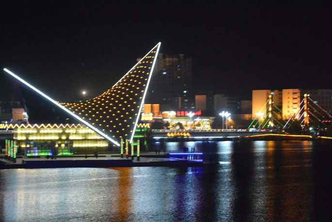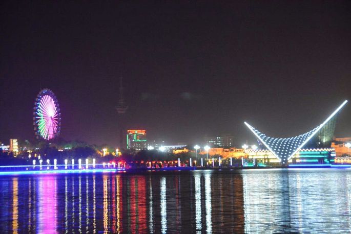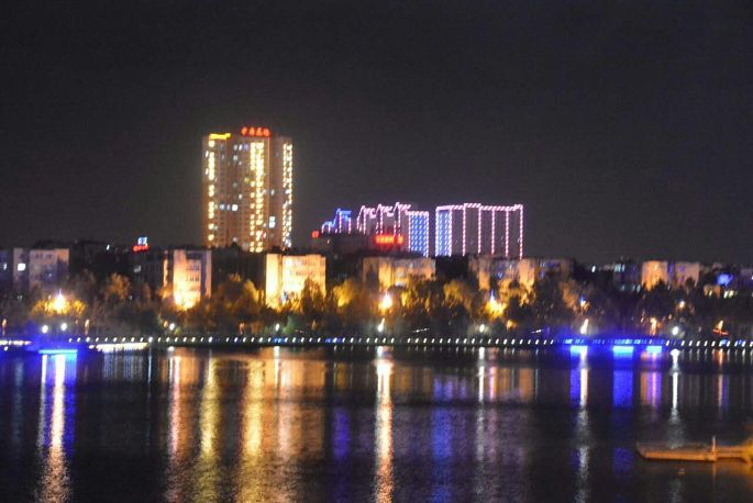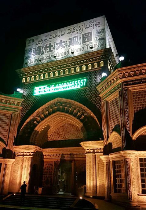 在喀什晚饭后,走路回住地,晚上的东湖夜景非常漂亮,灯饰堪比内地一线城市。