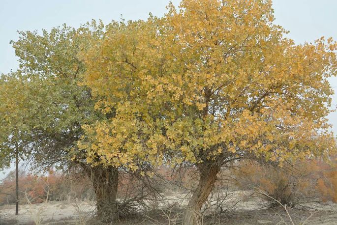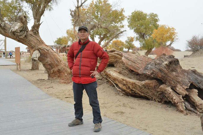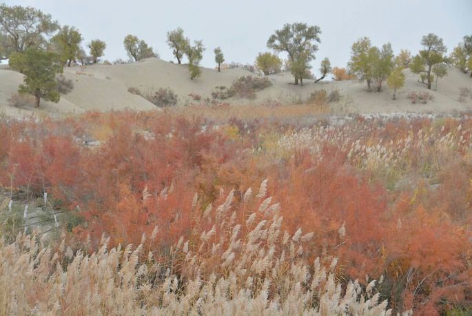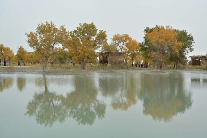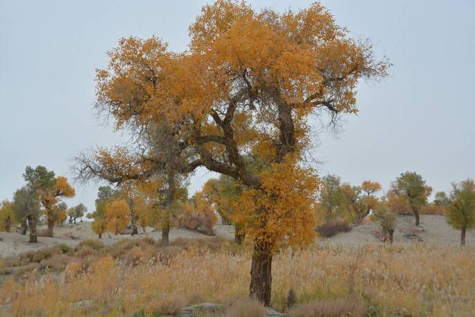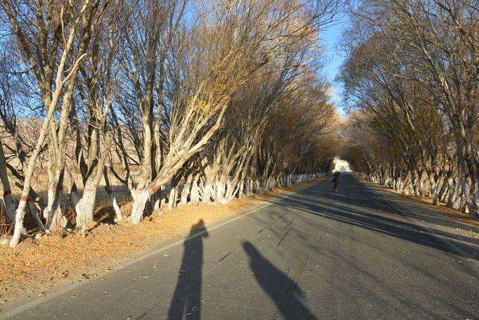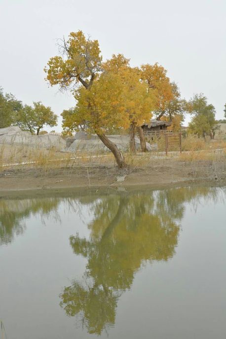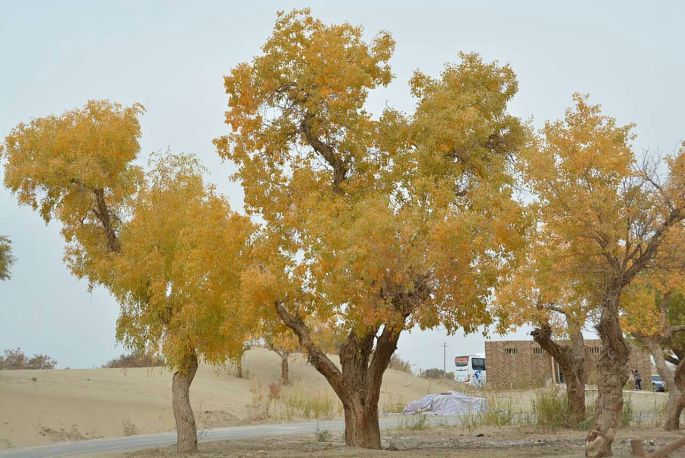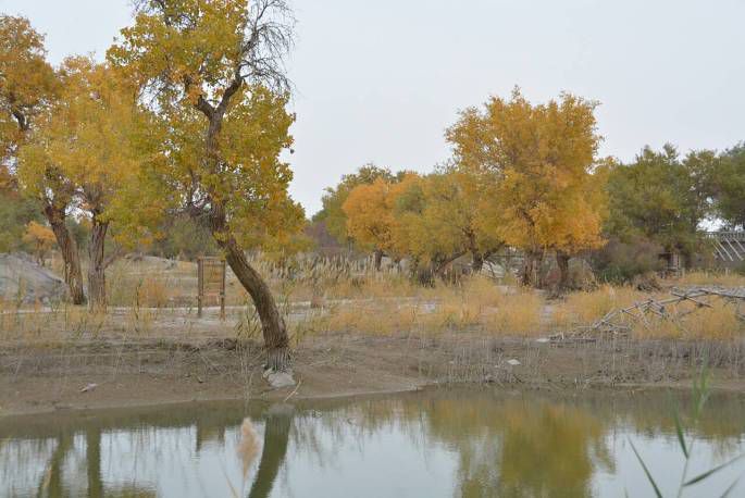 早上去胡杨林公园,但由于今年轮台胡杨林虫害严重,树叶都落光了,没有多大观赏价值,于是改道去罗布人村寨,靠近罗布泊地方,那里的胡杨还是不错。