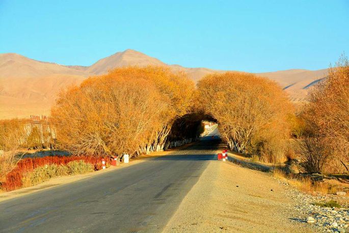 乌鲁木齐—库车—阿克苏—喀什—慕士塔格峰—塔县—红其拉甫口岸—叶城—和田—民丰—塔克拉玛干沙漠公路—轮台胡杨林—库尔勒—乌鲁木齐
