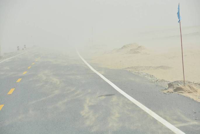 今天行车300公里,走的是沙漠公里,见证了沙漠沙尘暴面目。